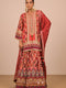 Persian Red Crepe Sharara Set with Canvas Tote Bag with Vibrant Print Motifs